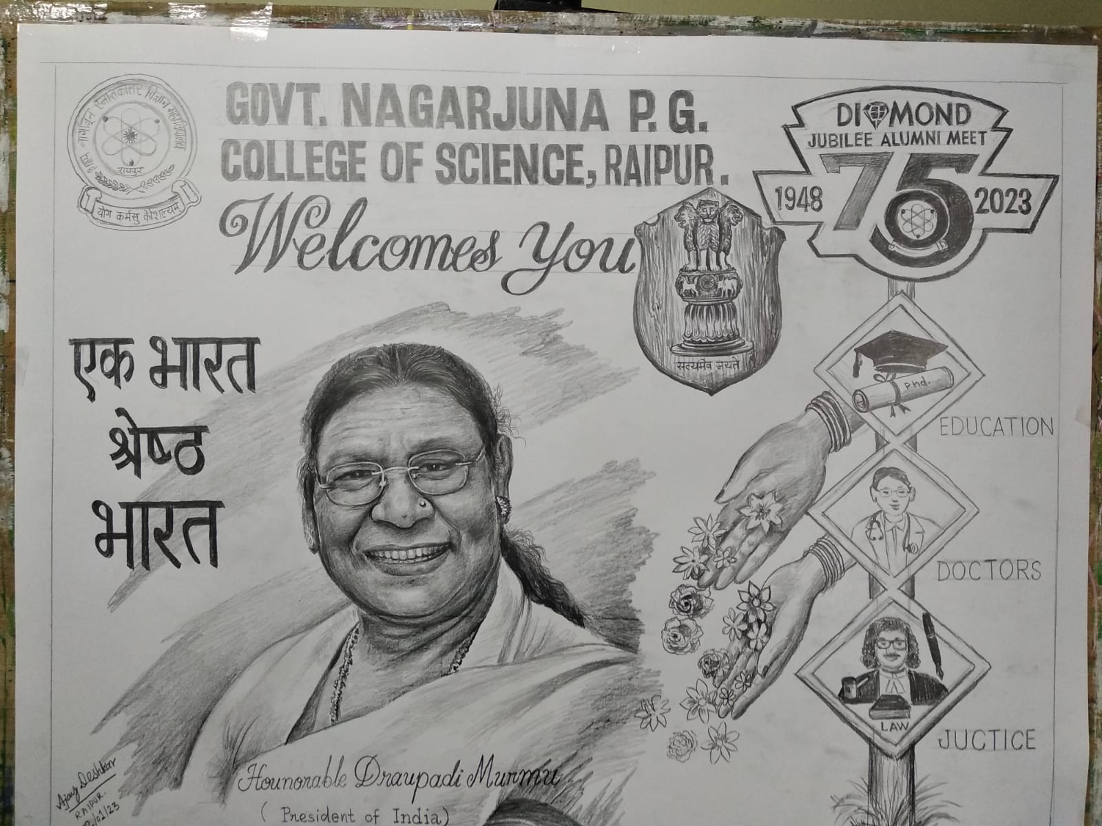 श्री अजय देशकार जी द्वारा निर्मित महामहिम राष्ट्रपति महोदया का रेखाचित्र